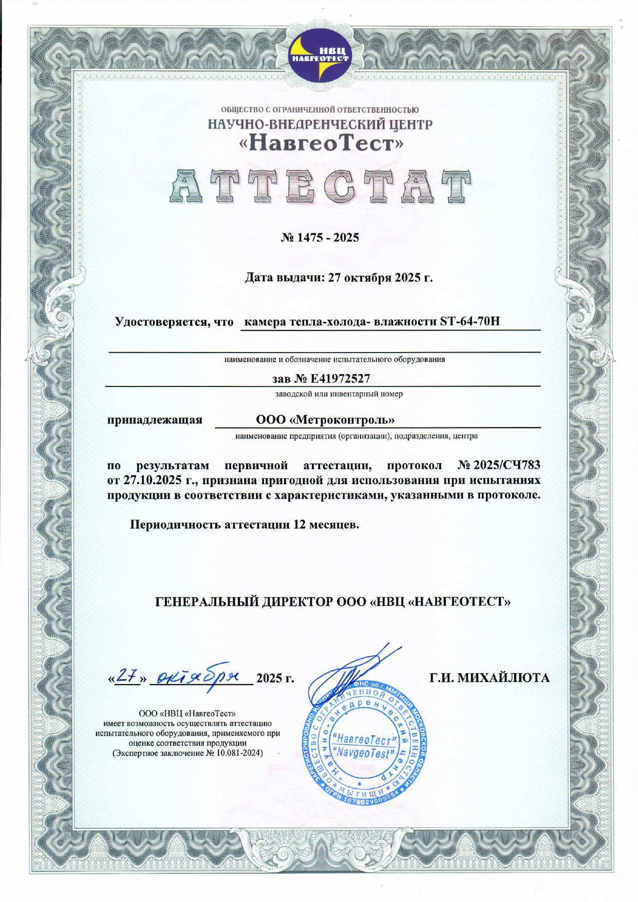 - позволяет нашей лаборатории выполнять поверку термогигрометров всех типов и моделей, включая приборы для экстремальных условий эксплуатации.